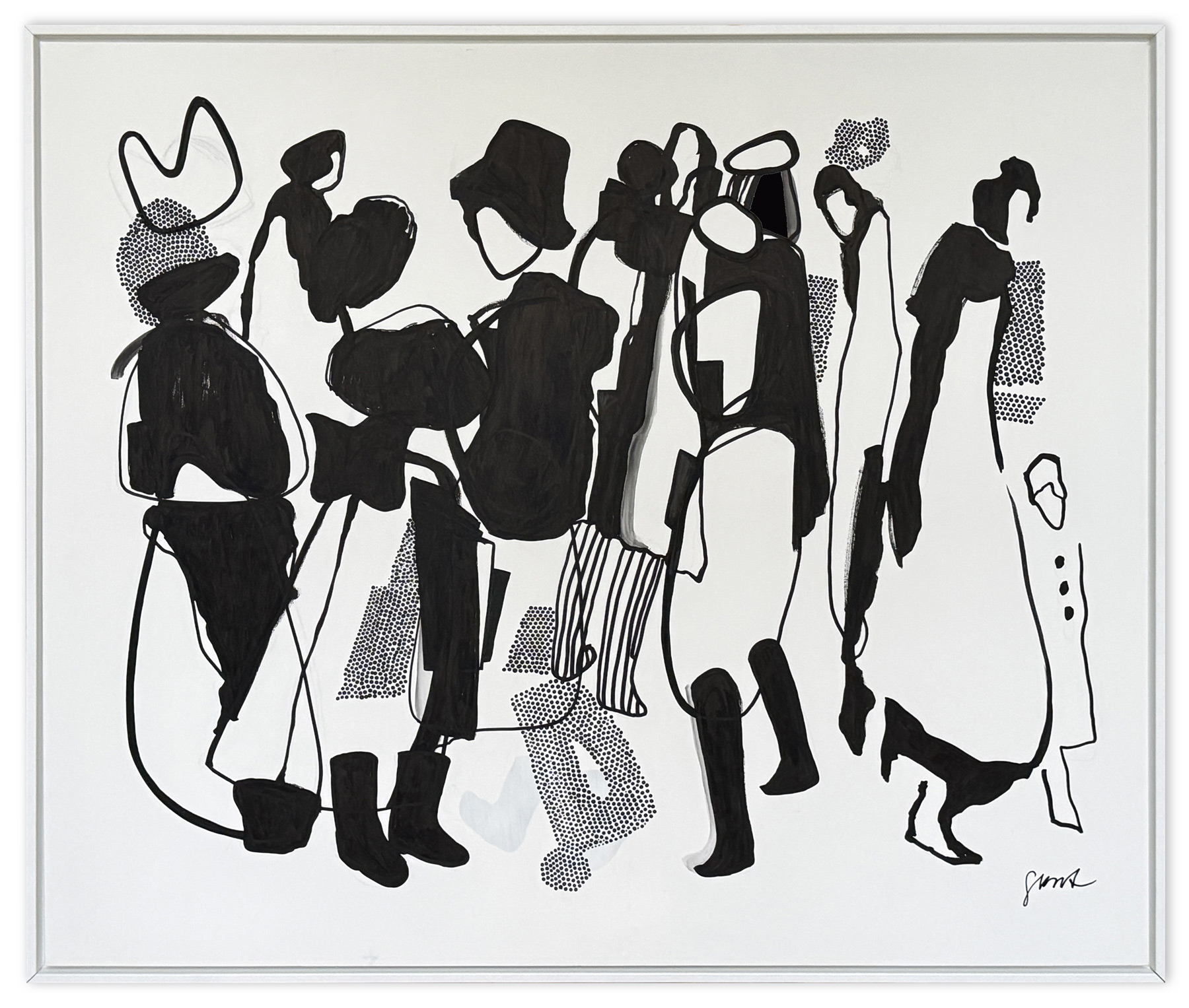 Liminality—the experience of being in-between—forms the overarching theme. Simplified forms, figures, and compositions arise in the space between abstraction and representation, between art and graphic form, where the subtle tensions between opposites become visible.